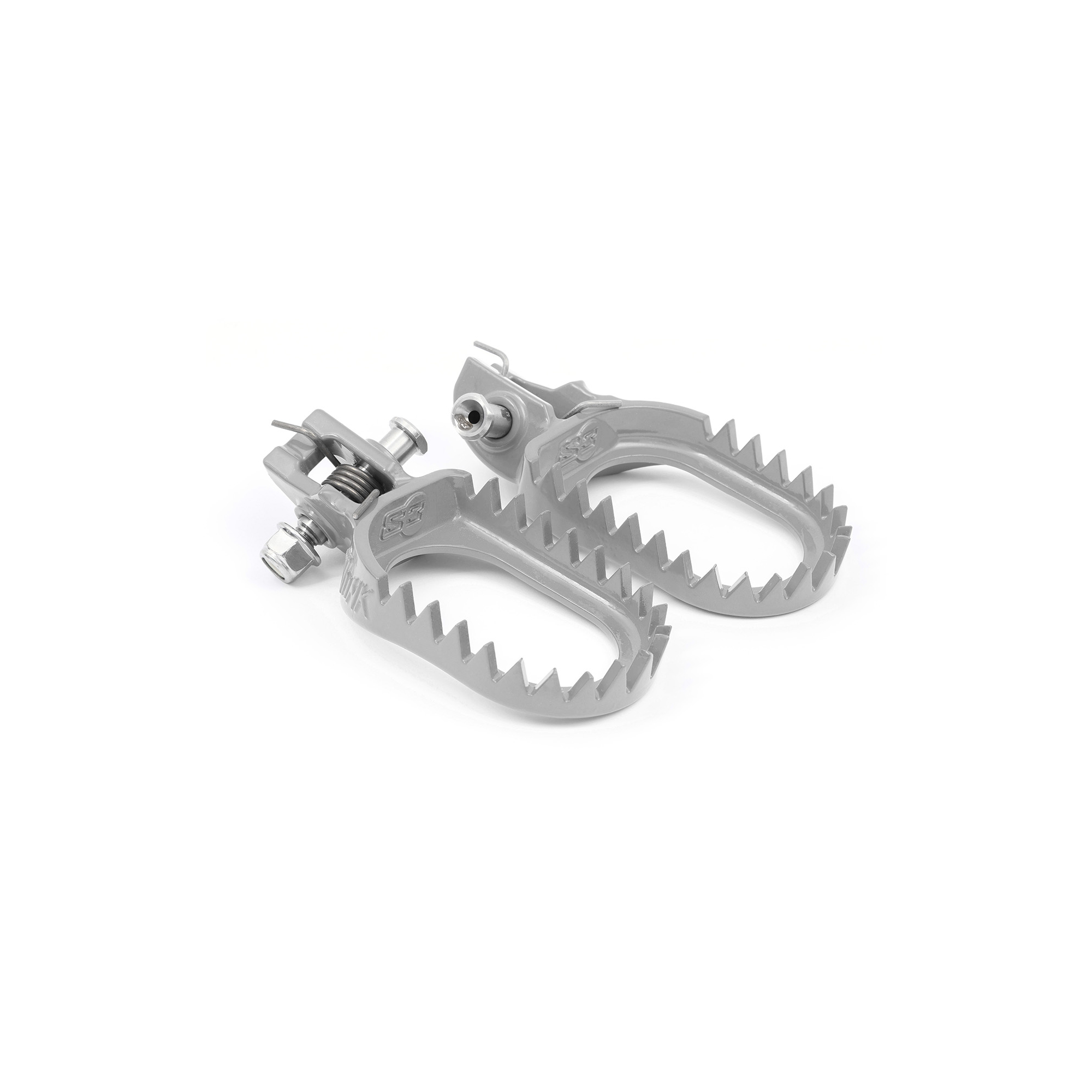 ESK-1231-S PUNK S3 FOOTPEG SILVER Color: Plateado, Material: Acero templado, Posici贸n: Estandard Extra info Modalidad Enduro Material Acero templado Regulables No Superf铆cie plataforma 62mm x 92mm Posici贸n horizontal Posici贸n vertical Baja(3mm) 脕ngulo 0.00潞 Peso 252.00g Compatible con: RIEJU Ver modelos 307 300 2025 hasta actual