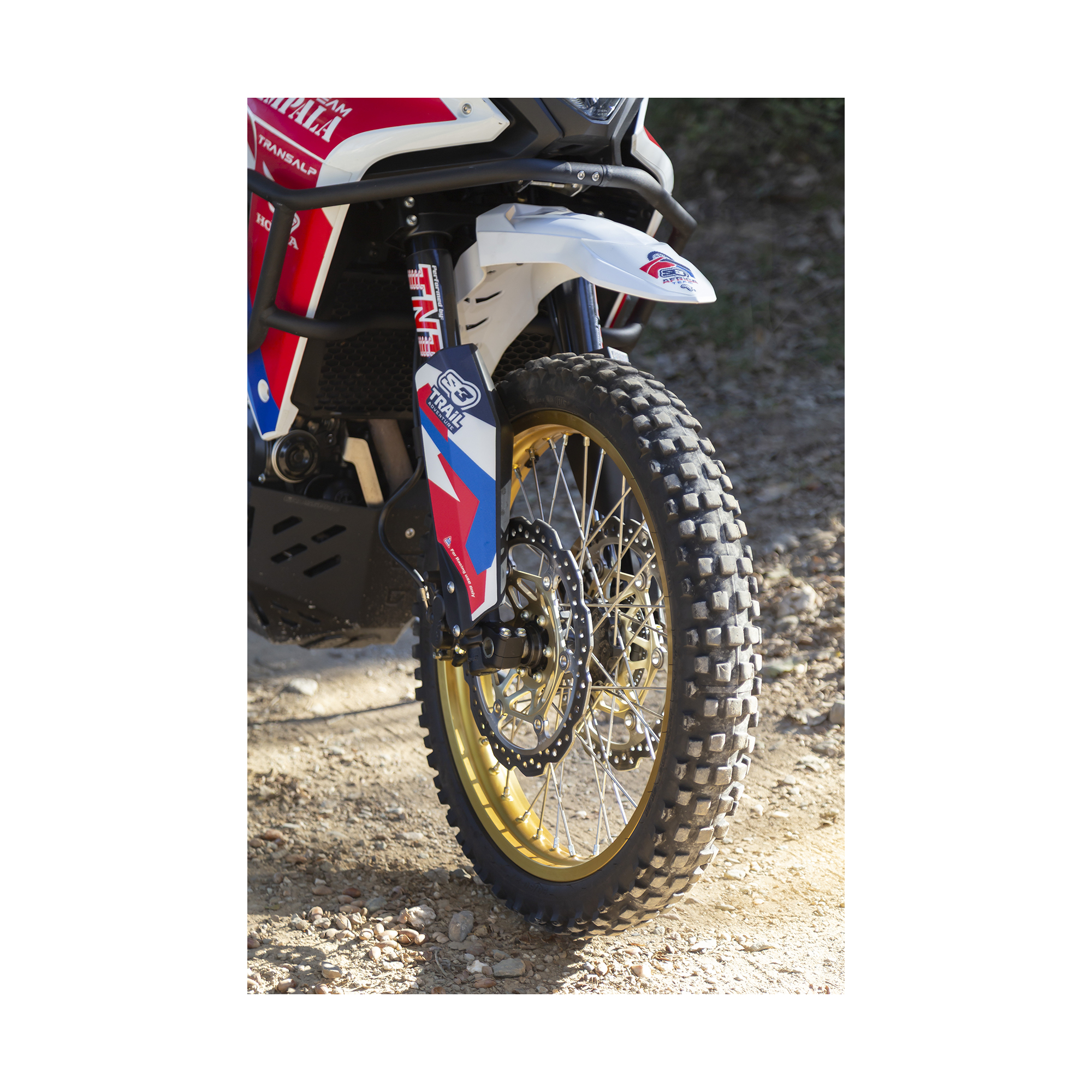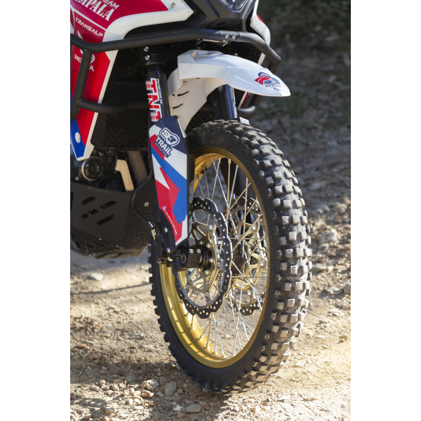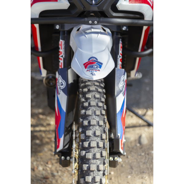 Caractéristiques principales :Installation facile : Sans perçage ni ajustements compliqués. Plug & Play !Look racing et 100 % off-road : Un style audacieux combiné à des performances exceptionnelles sur terrains difficiles.Optimisation de l’espace avant : Améliore la garde entre la roue et le garde-boue, particulièrement utile sur les terrains boueux ou sablonneux.Matériaux de haute qualité : Conçu pour offrir une durabilité et une résistance maximales dans les conditions les plus extrêmes.Le kit comprend :Garde-boue en plastique injecté haute résistance.Support avec visserie et système de montage complet.Serre-câbles et bandes adhésives pour une fixation solide et stable.Visserie et supports spécifiques pour le montage sur le té inférieur.Durites de frein racing avec connecteur et support de montage, pour une installation simple et une meilleure performance de freinage.Protections de fourche avec guide en plastique haute densité, conçues pour offrir une protection supplémentaire en utilisation off-road.Usage compétition uniquement.Ce kit est conçu pour maximiser les performances et le style de votre Honda Transalp, idéal pour les passionnés de racing et d’aventure off-road.